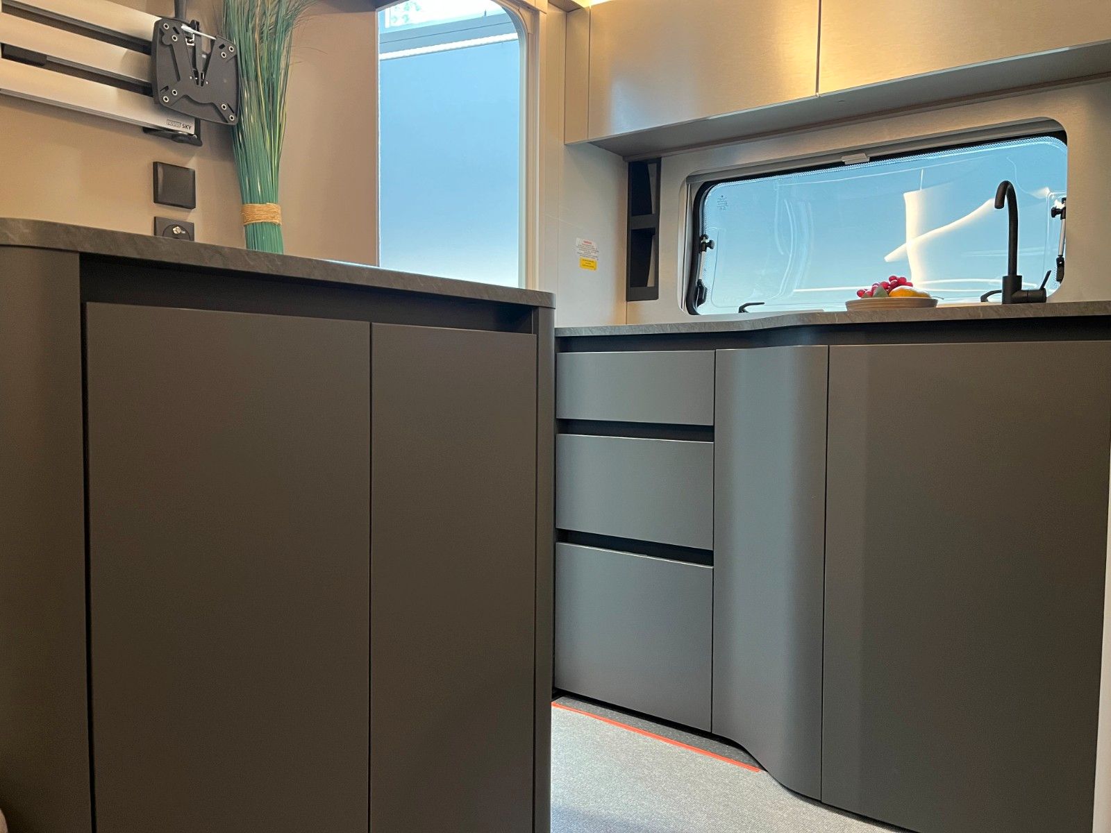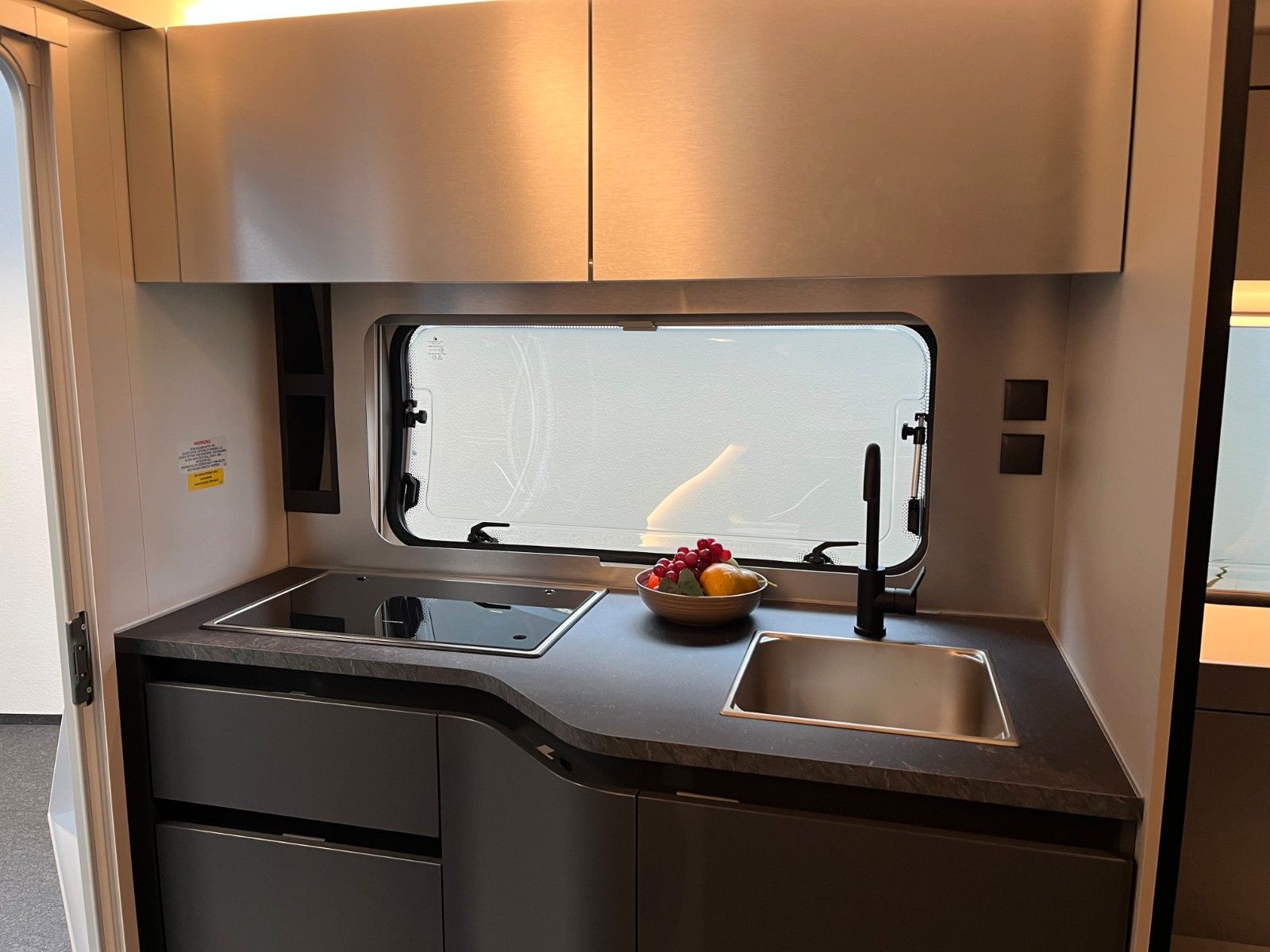 Antischlingerkupplung, Stoßdämpfer, Ersatzrad, AL-Ko Fahrwerk, Frischwassertank 50 L, Abwassertank rollbar 20 L, Wasserablauf zentral, Casetten Toilette mit Spülung, Absorber Kühlschrank 133 L, Warmwasserbereiter Boiler integriert, Eingangstür 2-teilig mit Fliegenschutz oben, Gaskocher 2 Flammen, Bluetooth Soundsystem, TFT Halterung, Kapazität Gaskasten 1x11 Kg, Abdeckung Kocher u. Spüle, Abtropfschale, Panorama Dachfenster Front, Midi Heki.
