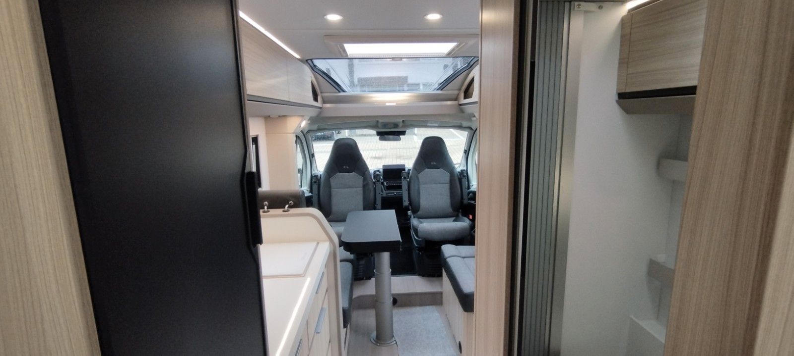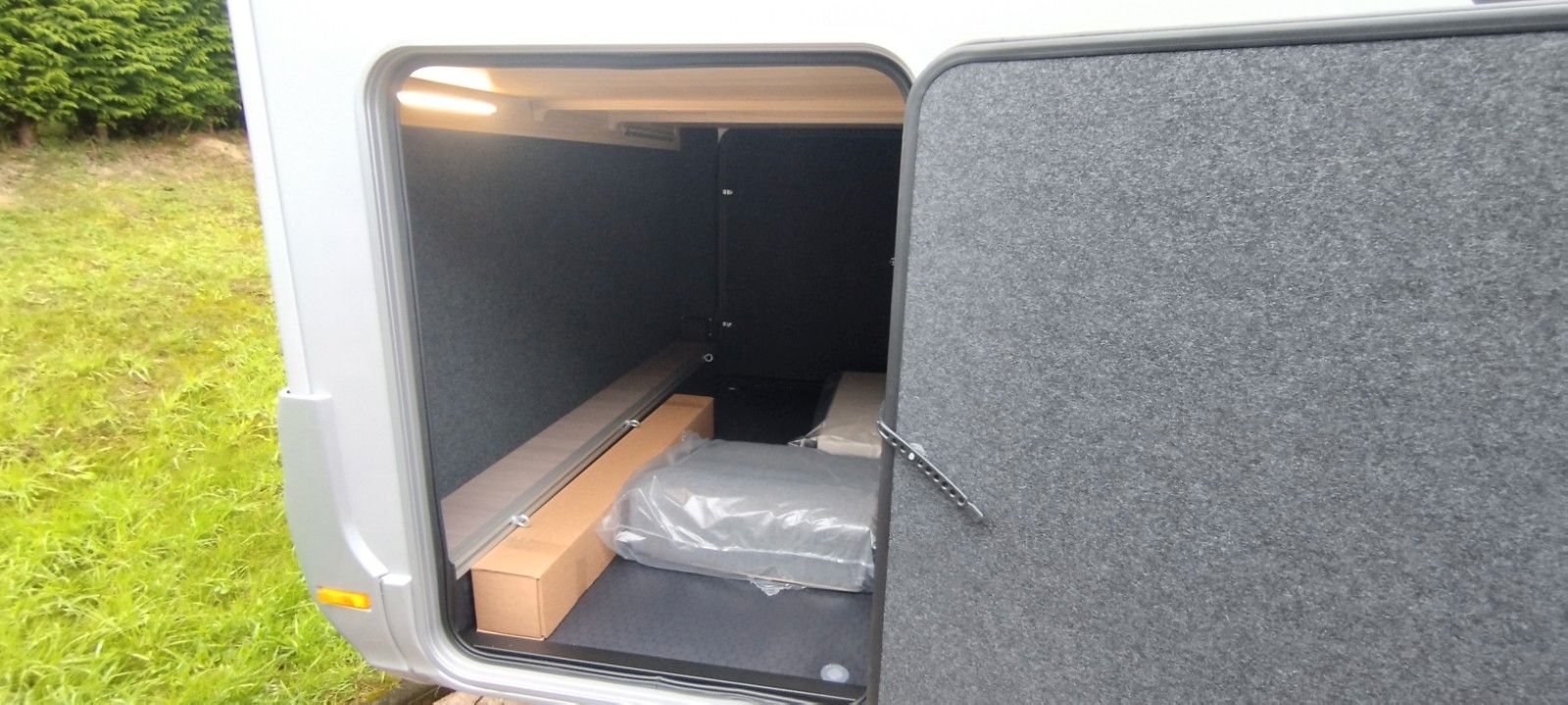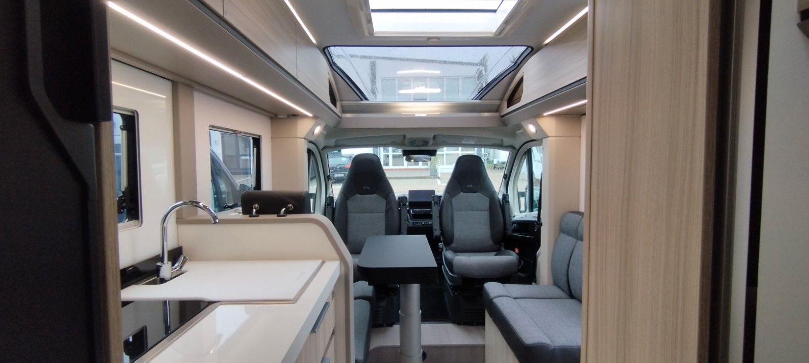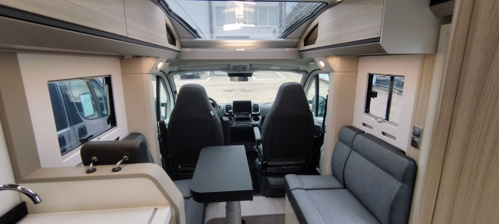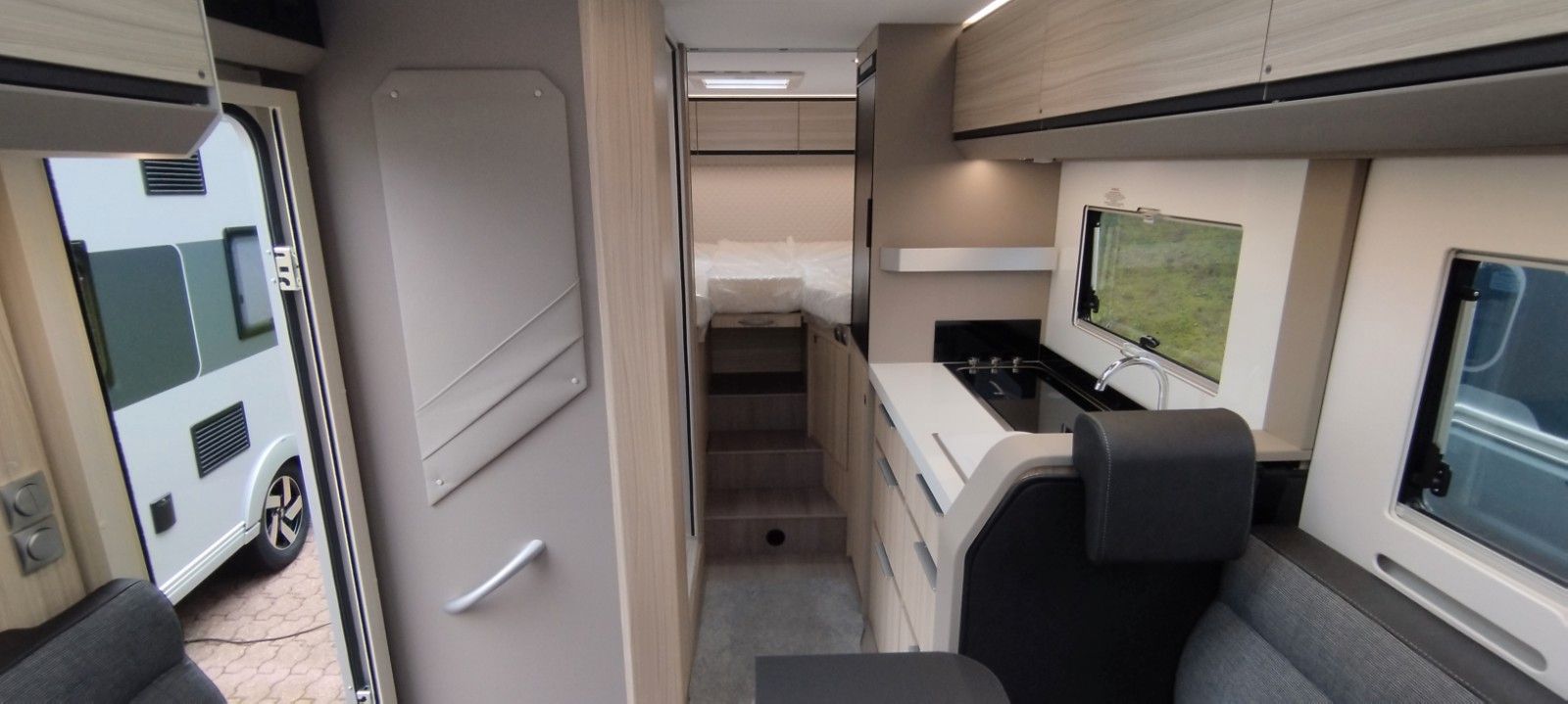 Achtung, die Bilder zeigen das Modell mit kleinem Kühlschrank ohne Markise und die Hängeschränke nicht in Unioptik, die Bilder werden zeitnah aktualisiert.