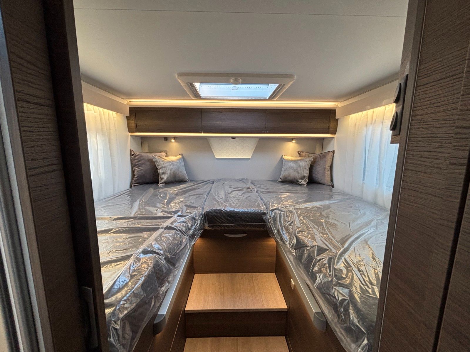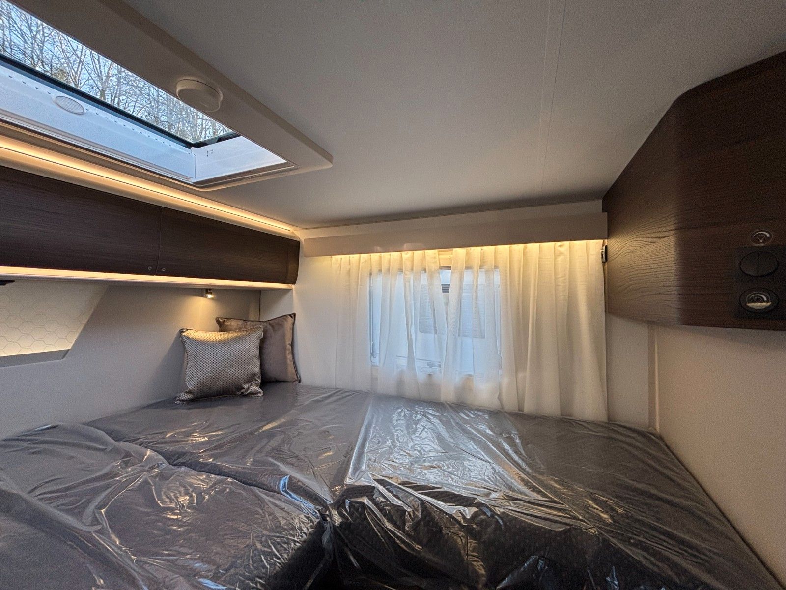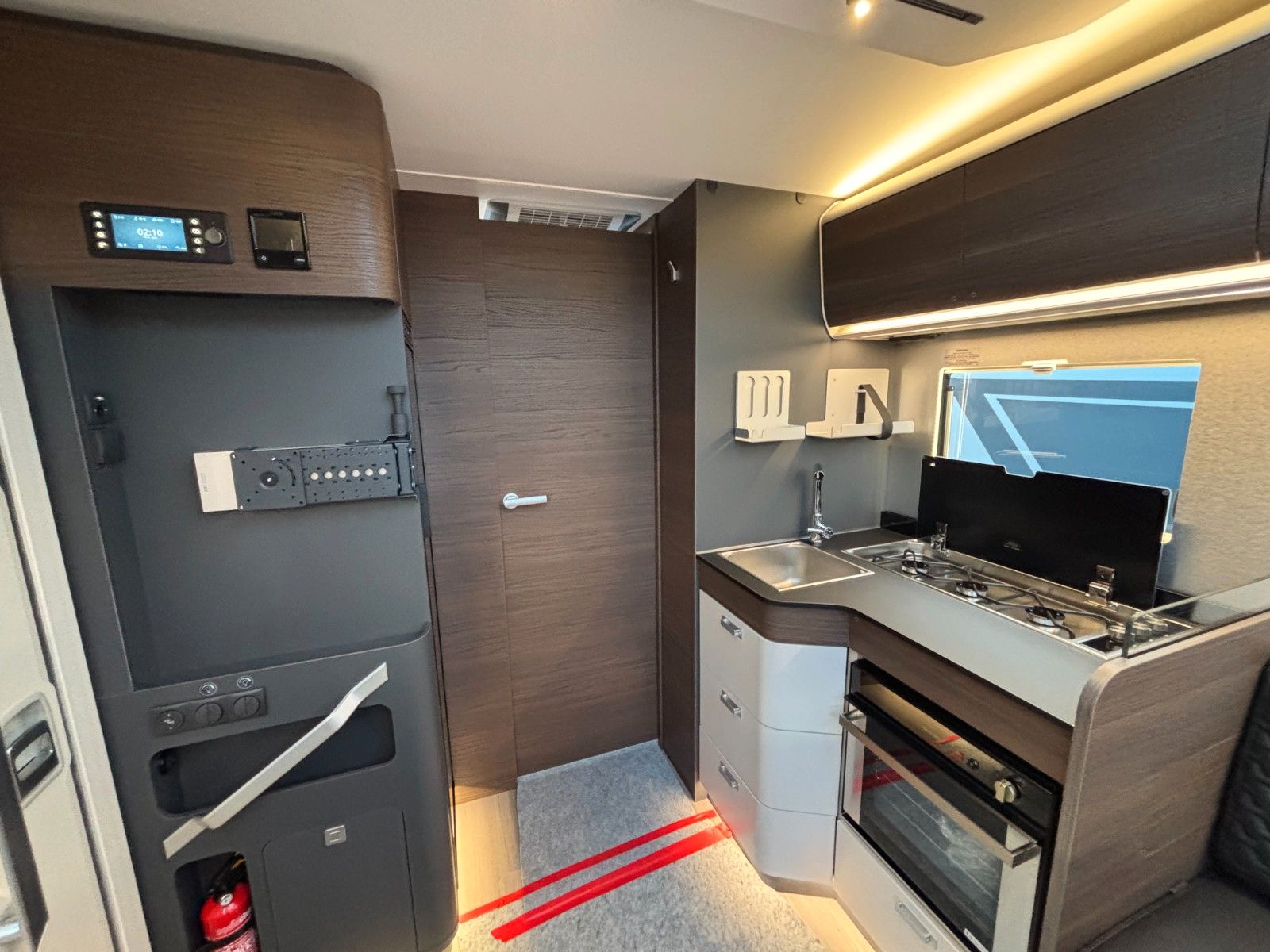 Gas-Heizung inkl. Warmwasser-Boiler: Alde Compact, Absorber Kühlschrank 140 L, Dieseltank 90L, AdBlue Tank 22L, Frischwassertank 150 L, Abwassertank 150 L, Außenstauklappe links & rechts 85x120 cm, Kapazität Gaskasten 2x11 Kg, Möbeldekor Moro.