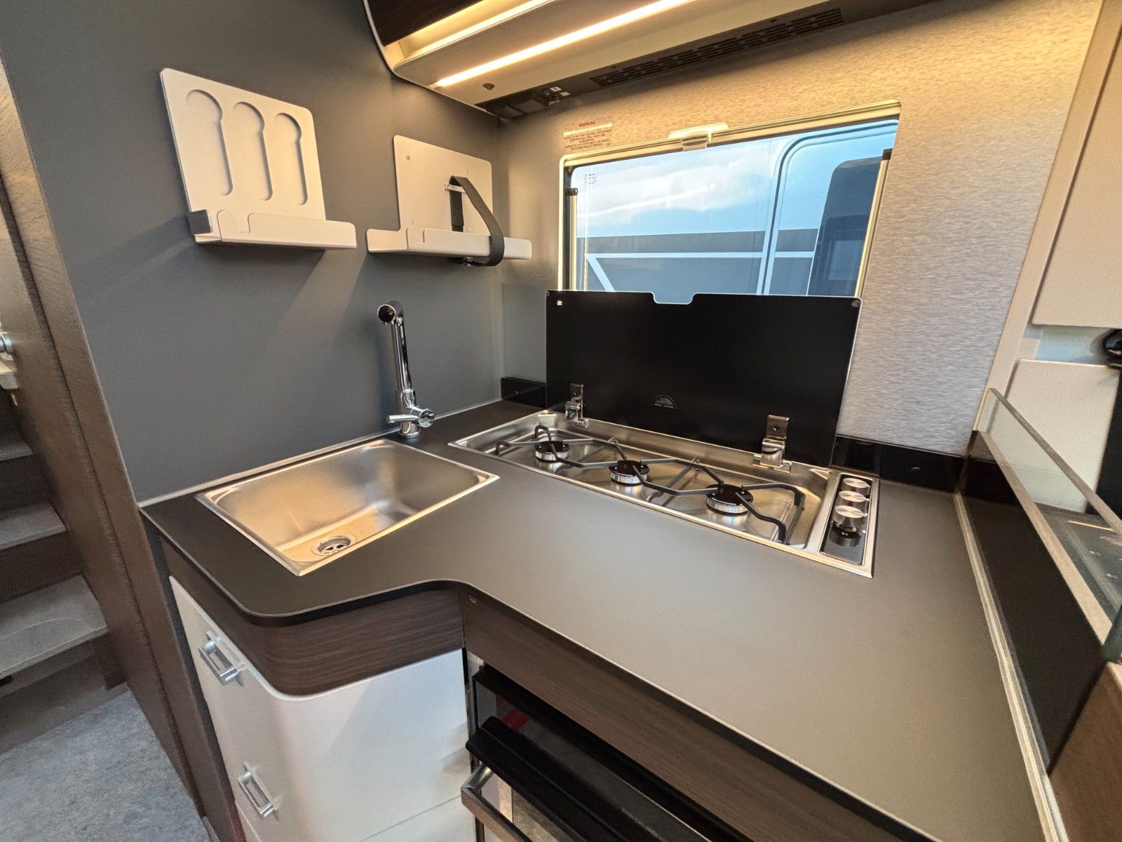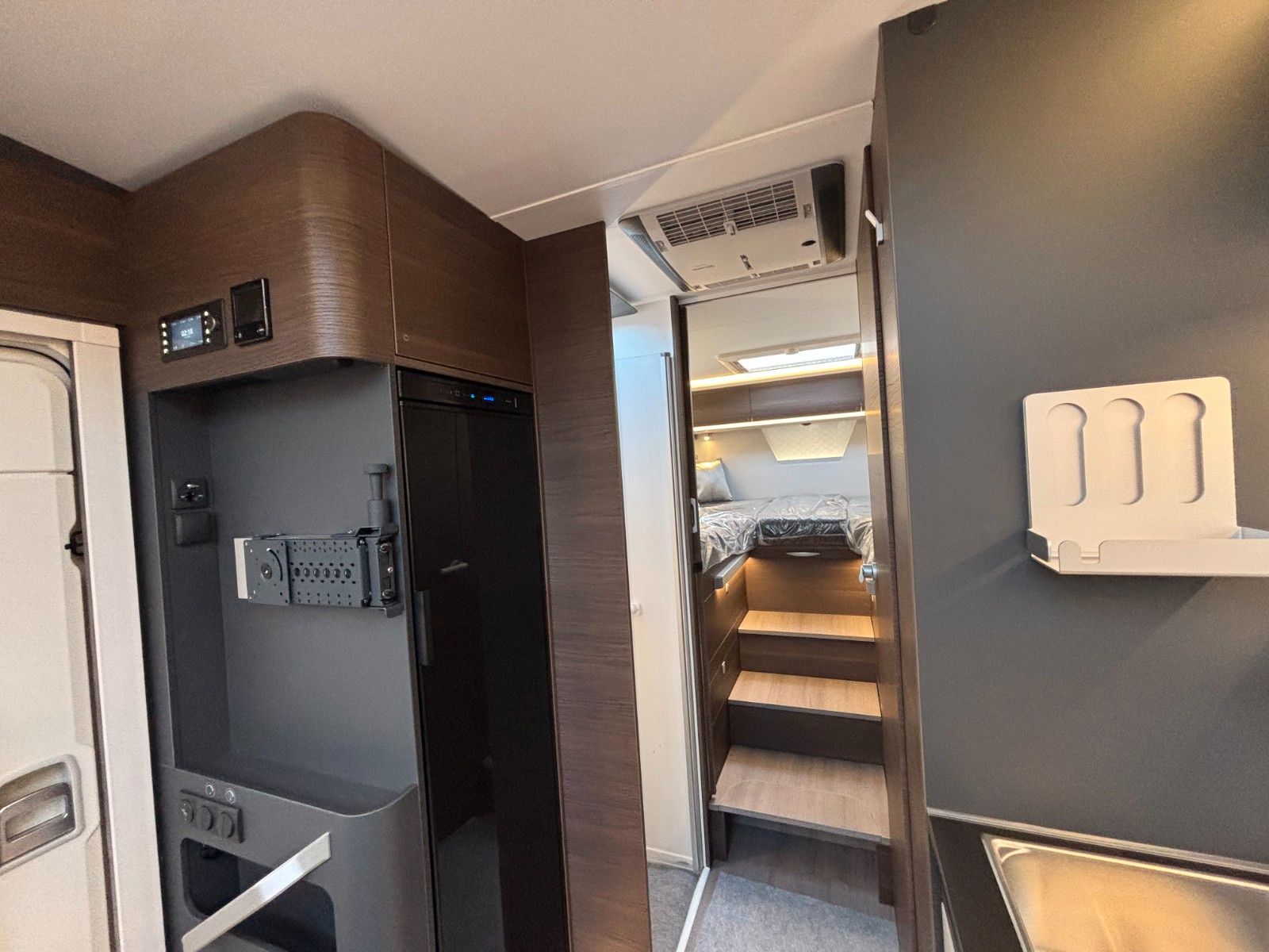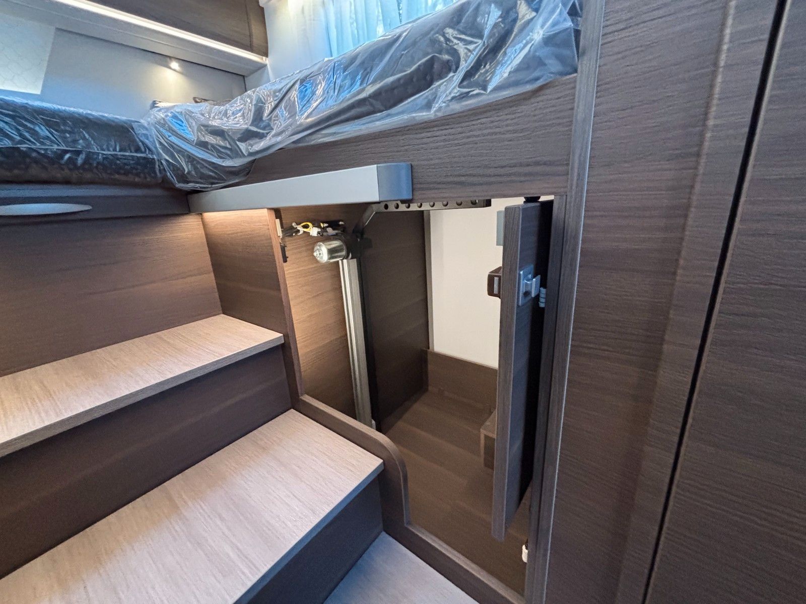 Gas-Heizung inkl. Warmwasser-Boiler: Alde Compact, Absorber Kühlschrank 140 L, Dieseltank 90L, AdBlue Tank 22L, Frischwassertank 150 L, Abwassertank 150 L, Außenstauklappe links & rechts 85x120 cm, Kapazität Gaskasten 2x11 Kg, Möbeldekor Moro.