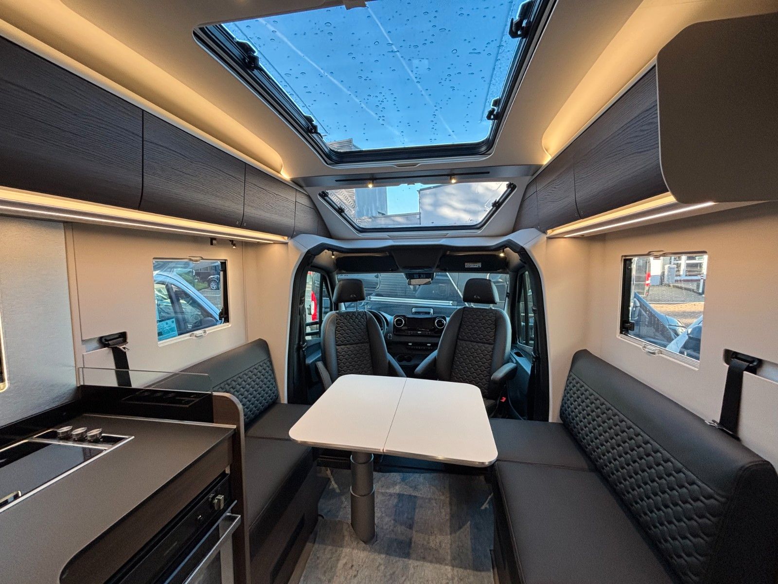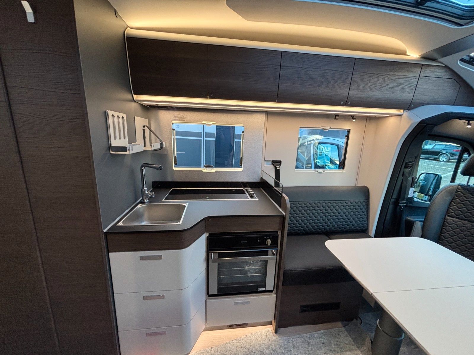 Al-Ko Chassis, Notbrems Assistent, Spurhalte-Assistent,Seitenwind Assistent, Aufmerksamkeits Assistent, Notruf System, Nebel Scheinwerfer, Regensensor, Einparkhilfe hinten, 10"DAB-Moniceiver MBUX mit MFL, Getriebe automatisch (9+R, statt manuell), Leichtmetall Felgen (statt Stahl), Handbremse elektr., Kurbelstützen hinten, Falt Verdunkelung FH, Wohnraumtür mit Fliegenschutz+Fenster+ZV, Federkern-Matratze auf Festbett(en), Ladebooster, TFT Halterung, Gasfilter, Warmwasser-Fußbodenheizung, Backofen mit Grill.