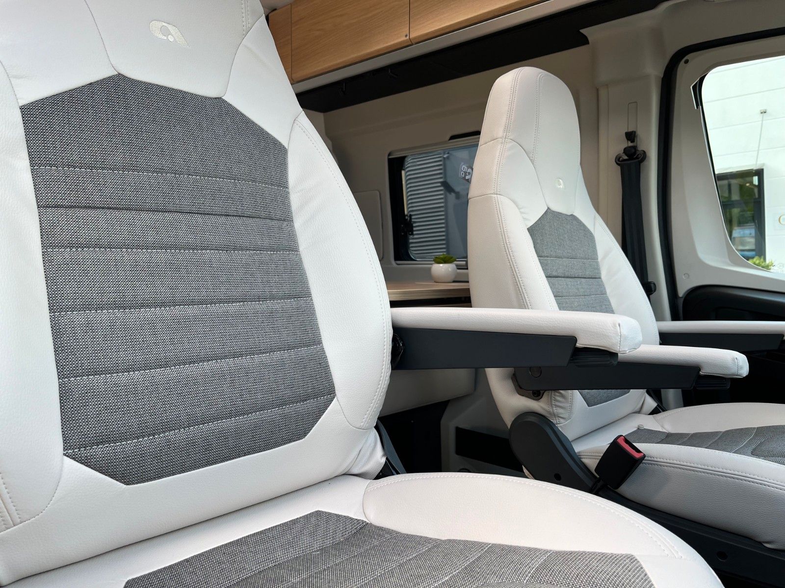 Automatik-Getriebe, Airbag Fahrer + Beifahrer, ABS, ASR, ESP, 16" Leichtmetall-Felgen, Lenkrad in Lederoptik, Lenkradbedienung und Antenne im Außenspiegel, Klimaanlage Fahrerhaus, Komfort-FH-Sitze mit Armlehnen im 60Y- Design, Fahrerzeuglackierung Silber-Grau Metallic, Frontstoßfänger lackiert, Nebelscheinwerfer, DC/DC-Wandler (Lichtmaschinen-Booster), Plissee-Verdunkelung Fahrerhaus, Fliegenschutz an Schiebetür, Wohnraumfenster mit Rahmen, Komfort-Tisch mit Verlängerung und Becherhalter, isofix, Evopore Schaumstoffmatratze, Spülen-Abdeckbrett 60Y, Abwassertank isoliert und beheizt, TV-Halterung, Adria MACH Basic