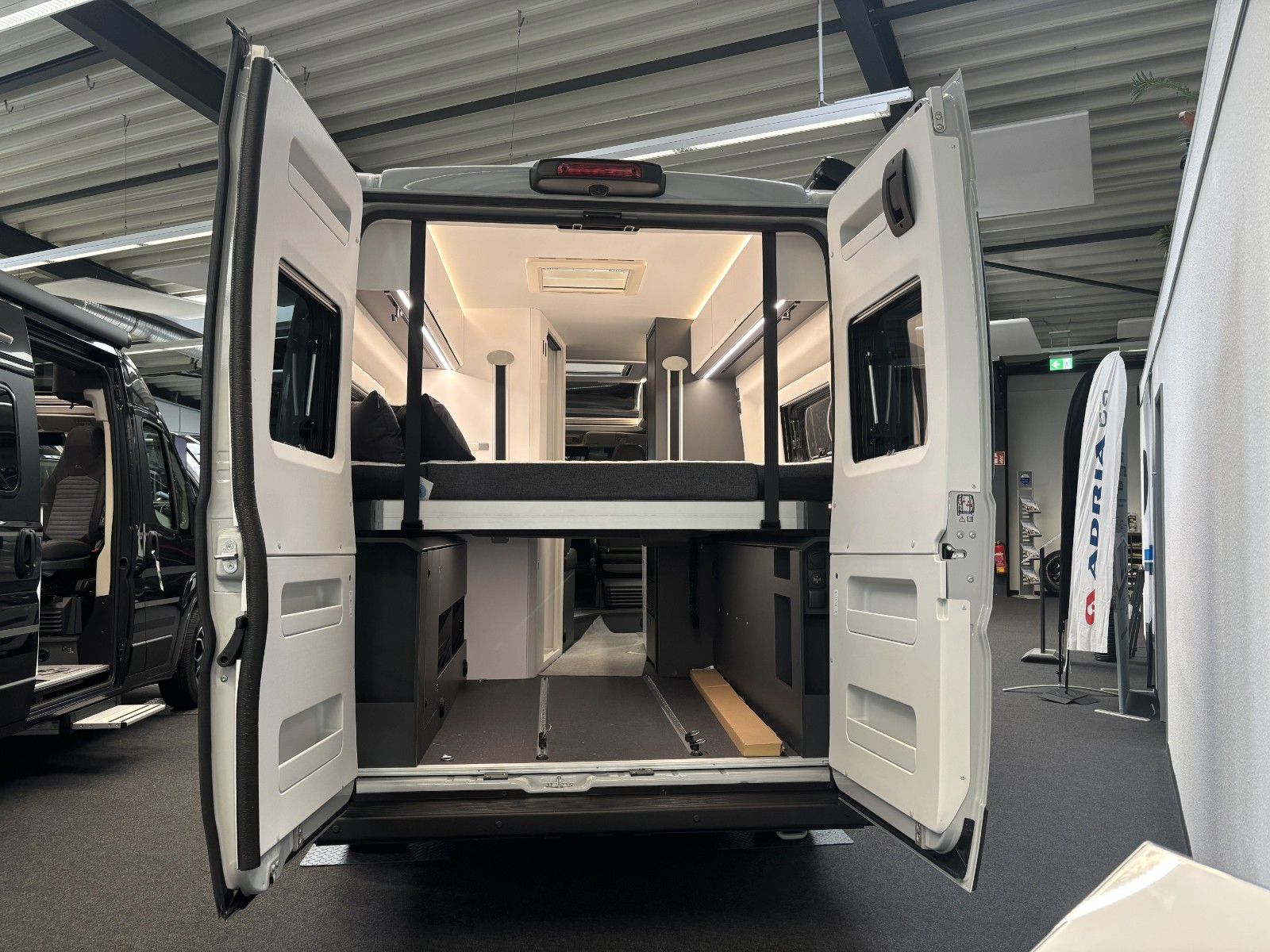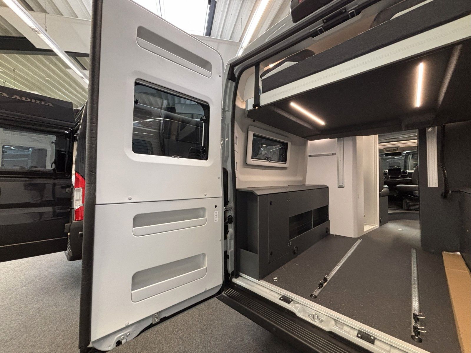 Polster "Arno", Airbag Fahrer + Beifahrer, ABS,ASR,ESP,Hillholder, Traction+, Tagfahrlicht, Klimaanlage Fahrerhaus, Tempomat, Funk-Zentralverriegelung, Außenspiegel elektr. verstell- und beheizbar, Fensterheber Fahrerhaus elektr., dreh- und höhenverstellbare Komfort-Fahrerhaus-Sitze mit Armlehnen im Wohnraumdesign, Stopp-Start-Automatik, 16" Räder, Reifen-Reparaturset, Stopper an Schiebetüre, App-Vorbereitung Adria-MACHbasic, AGM-Wohnraumbatterie 100AH, Dusche, Schwenkbad, Cassetten-Toilette mit elektr. Spülung, Panorama-Dachhaube Front.