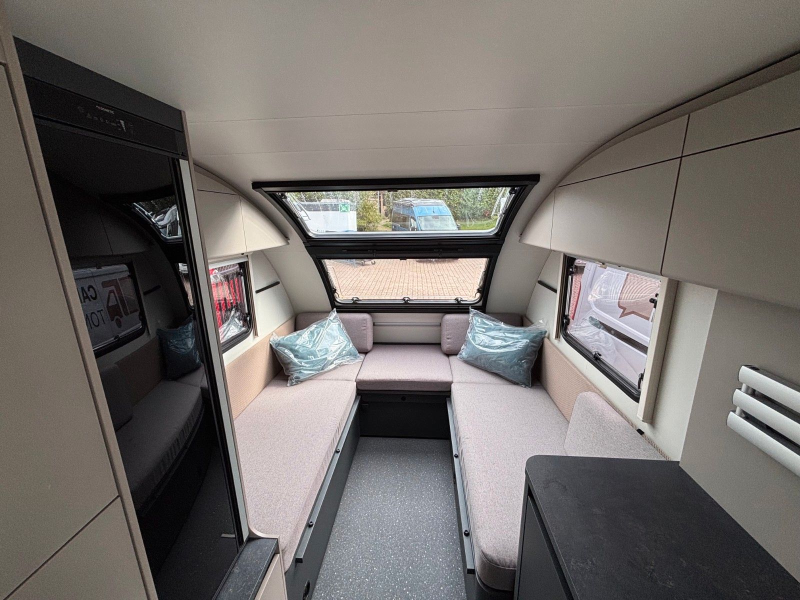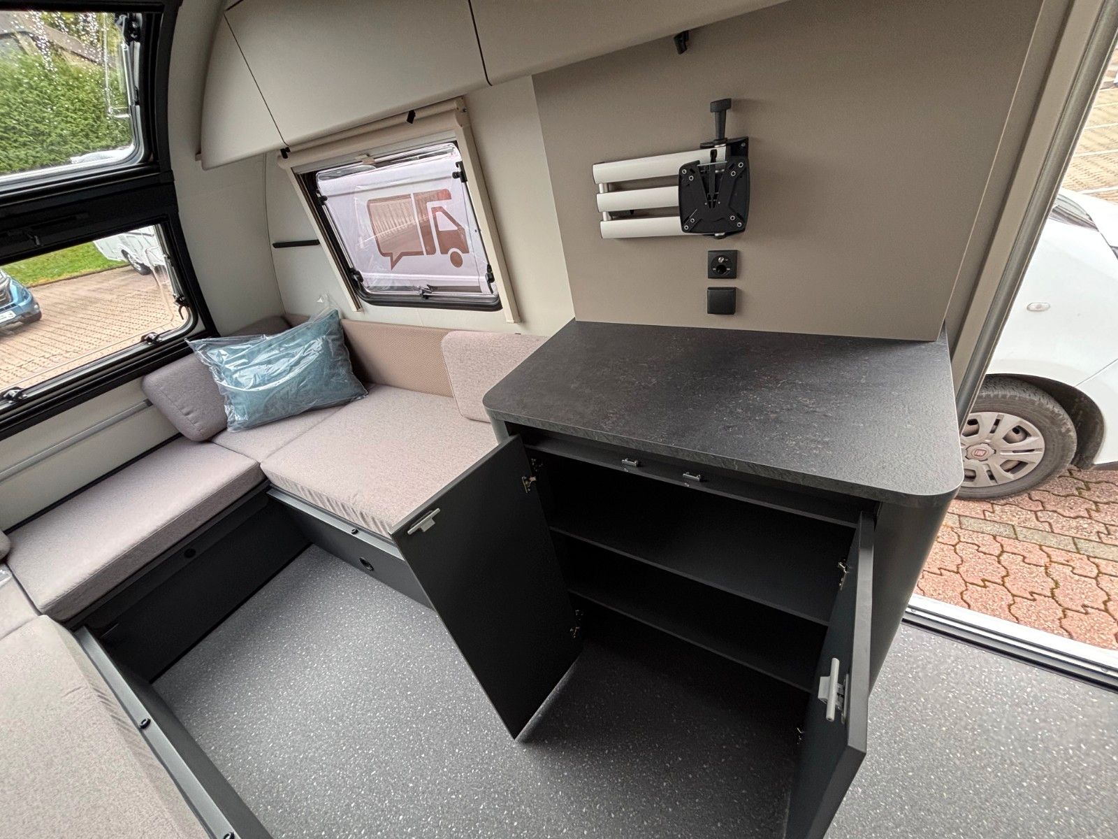 Antischlingerkupplung, Stoßdämpfer, Ersatzrad, AL-Ko Fahrwerk, Frischwassertank 50 L, Abwassertank rollbar 20 L, Wasserablauf zentral, Casetten Toilette mit Spülung, Absorber Kühlschrank 133 L, Warmwasserbereiter Boiler integriert, Eingangstür 2-teilig mit Fliegenschutz oben, Gaskocher 2 Flammen, Bluetooth Soundsystem, TFT Halterung, Kapazität Gaskasten 1x11 Kg, Abdeckung Kocher und Spüle, Abtropfschale, Panorama Dachfenster Front, Midi Heki.