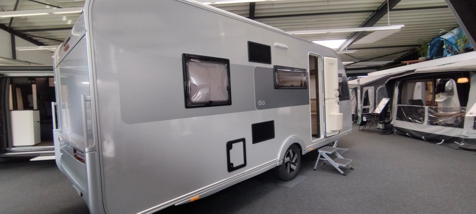 Al-Ko VarioX Leichtbau Chassis, Außenhaut in silbergrau mit 60Y Grafikdesign,Dachreling,