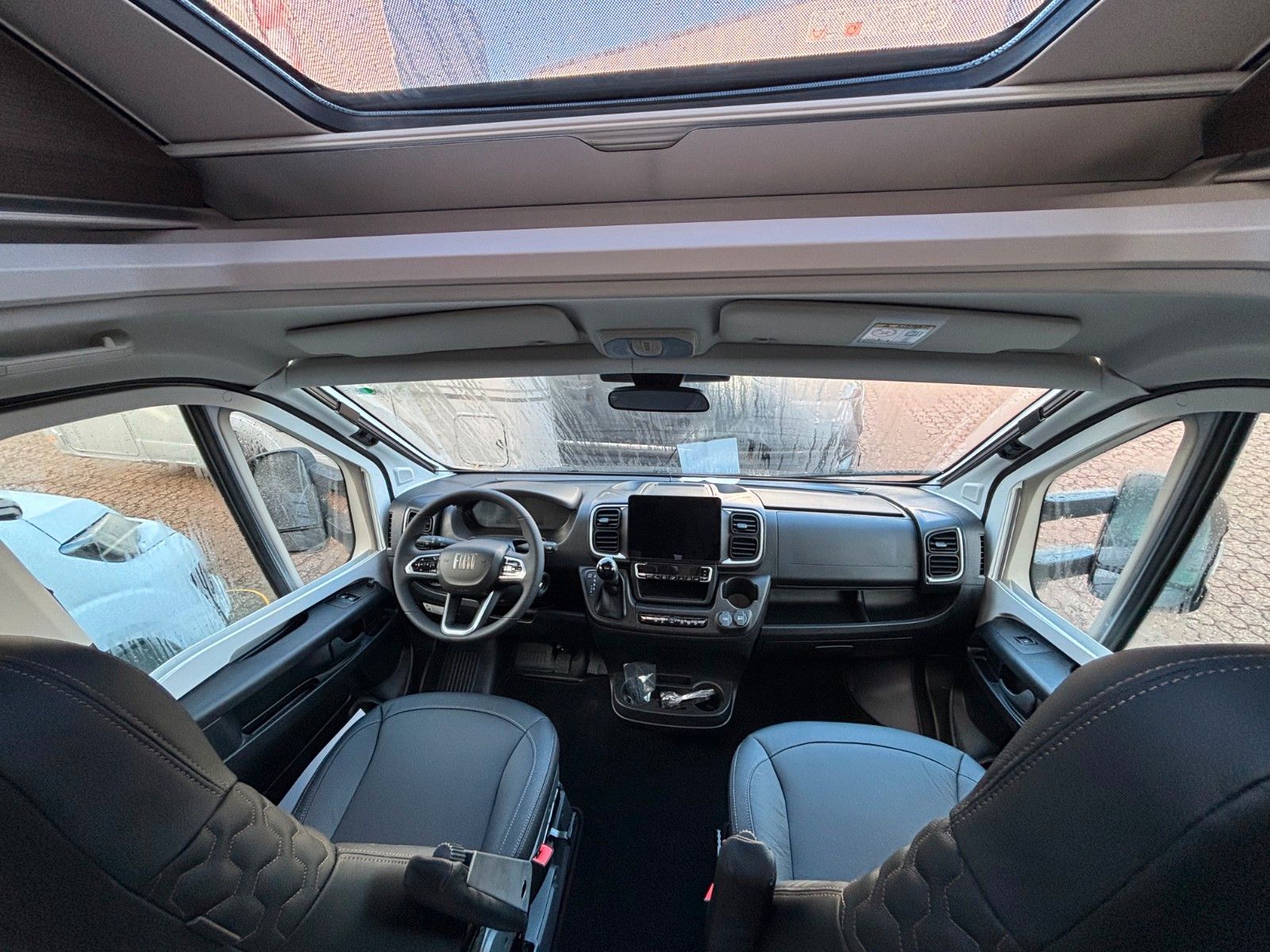 Polster Arno, Airbag Fahrer+Beifahrer, ABS,ASR,ESP,EBD,HBA,LAC,MSR, Hillholder, Tagfahrlicht, LED Rücklicht, Klimaanlage Fahrerhaus,Außenspiegel elektr. verstell und beheizbar, Fensterheber FH elektr., Funk Zentralverriegelung FH, Tempomat, dreh- und höhenverstellbare Komfort FH Sitze mit Armlehnen im Wohnraumdesign, Getriebe Manuell (6+R), Frontantrieb, 16" Räder (bei Automatik Getriebe), Reifen-Reparatur-Set, Frontstoßfänger lackiert in FH-Farbe, Wohnraumfenster mit Rahmen, Funktions Doppelboden, AGM Wohnraumbatterie 100Ah,Ladestation 230V/12V in Garage, Sicherheits-Gasregler MonoControl CS, Dunstabzug, Abdeckung Kocher, Abtropfschale, Cassetten-Toilette mit elektrischer Spülung.