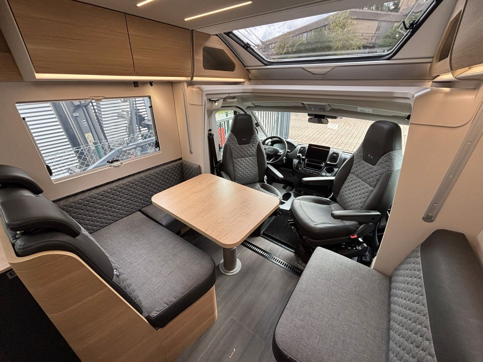 Motorisierung 180 Multijet, 130kW/180PS (statt 140 Multijet) Chassis 4400 Maxi (statt 3500 Kg), Licht Assistent, Regen Assistent, Brems Assistent, Spurhaltewarn Assistent, Verkerhrszeichen Assistent, Geschwindigkeits Assistent, Abstandsregel Assistent, Fahrermüdigkeitserkennung, 10" Naviceiver inkl. Rückfahrkamera, 7" Instrumentenanzeige digital, Klimaautomatik Fahrerhaus (statt Klimaanlage).