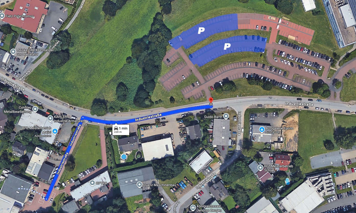 Damit Ihr Besuch bei uns stressfrei beginnt, haben wir für Sie zusätzliche Parkplätze nur wenige Meter von unserem Standort entfernt angemietet. Folgen Sie einfach dem Parkleitsystem vor Ort – es führt Sie direkt zu den freien Stellplätzen.