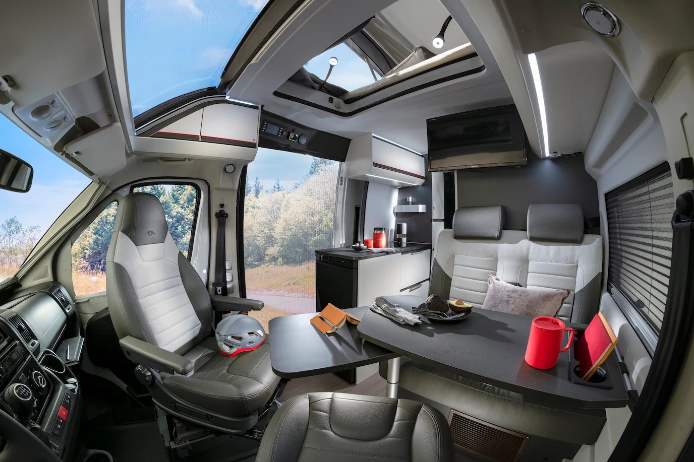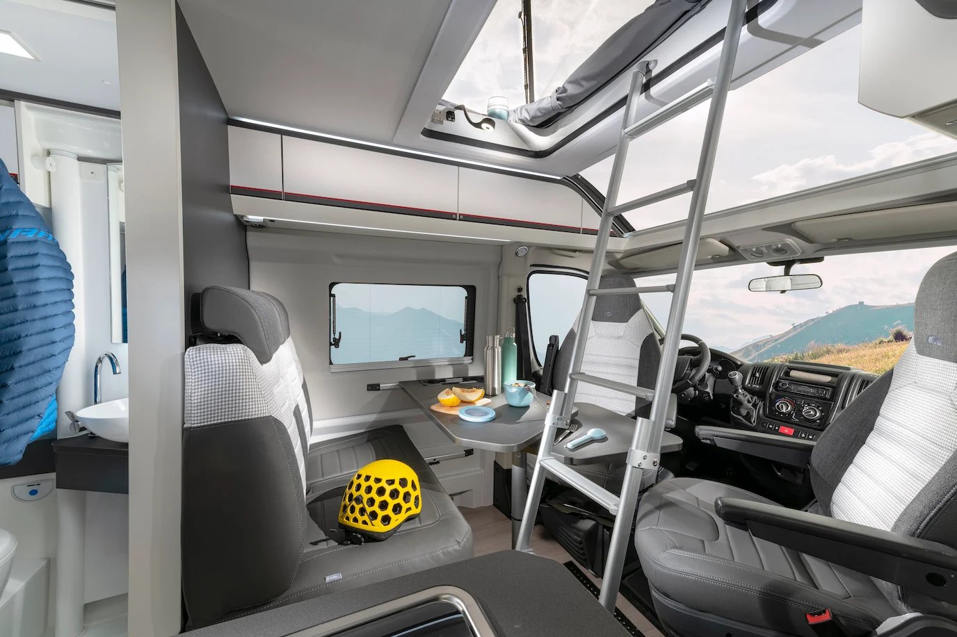 Der Innenraum wurde komplett überarbeitet und überzeugt mit leichten, robusten Möbeln, mehr Stauraum und einer verbesserten Ergonomie. Nachhaltige Materialien wie EPP-Elemente tragen zu einem hochwertigen, modernen Ambiente bei.